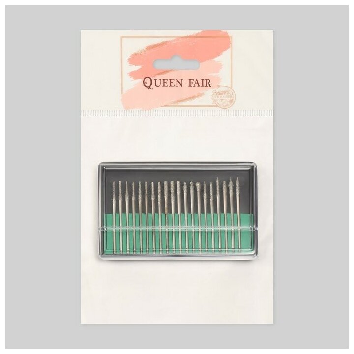 Queen fair Фрезы алмазные для маникюра в органайзере, 20 шт
