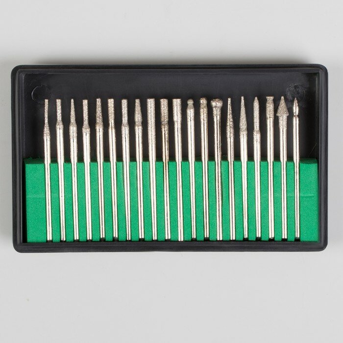 Queen fair Фрезы алмазные для маникюра в пластиковом органайзере, 20 шт