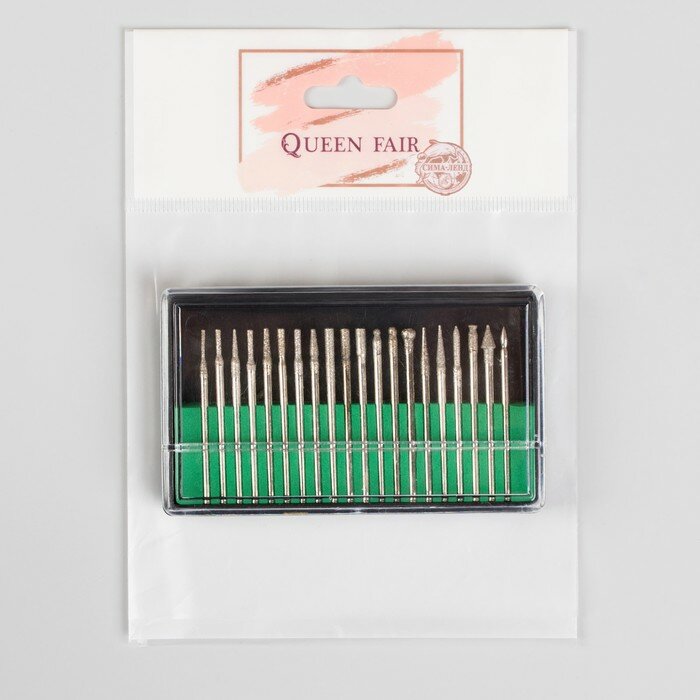 Queen fair Фрезы алмазные для маникюра в органайзере, 20 шт