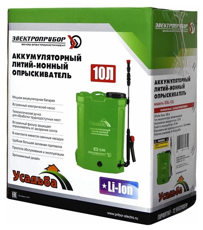 Ниже Вы можете прочитать отзывы на Опрыскиватель Электроприбор Усадьба ESL-12L, ознакомится с подробными характеристиками, посмотреть интересные обзоры и фотографии на Опрыскиватель Электроприбор Усадьба ESL-12L.