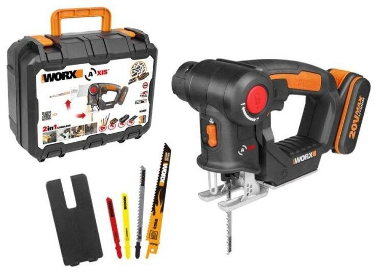 Worx Лобзик аккумуляторный-сабельная пила Axis Wx550, 20В, 2Ач x1, кейс [wx550] . интересное: