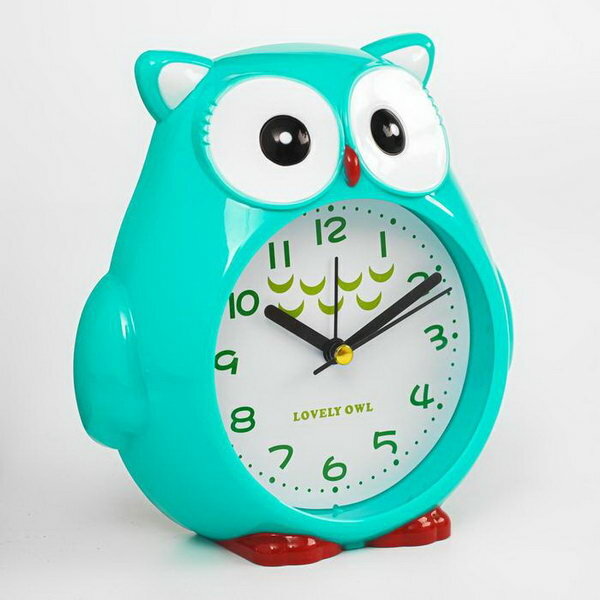 Будильник детский "Совушка", дискретный ход, d-9 см, 14.5 x 4 x 16 см, бирюзовый интересное: