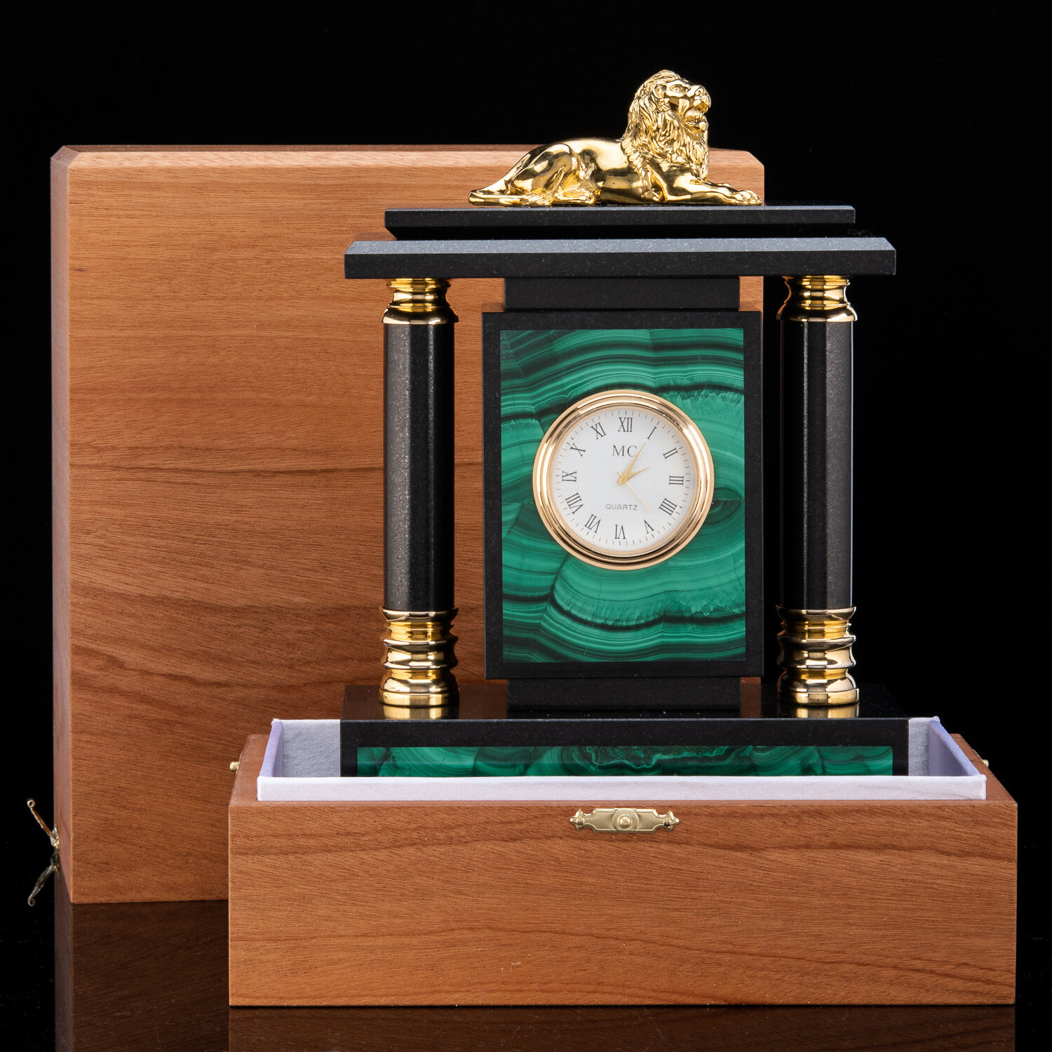 Купить Часы настольные "Лев". Малахит. Златоуст