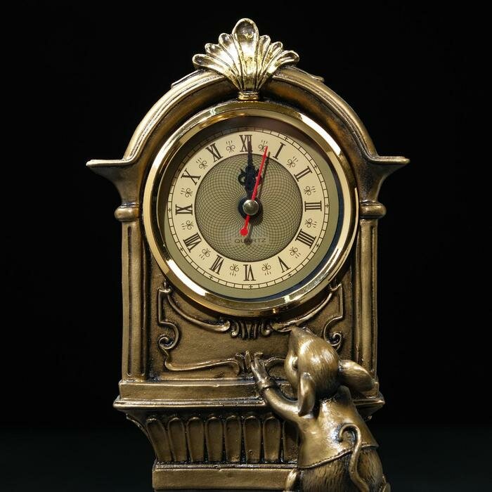 Часы настольные каминные "Часы с мышками", 9 х 16 х 34 см, бронзовые интересное: