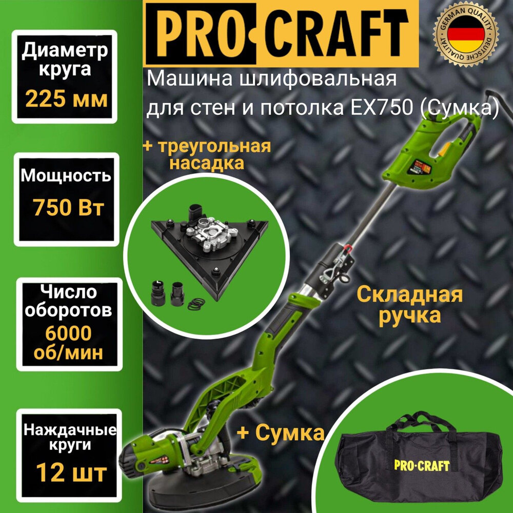 Шлифмашина для стен и потолков ProCraft EX750 кейс