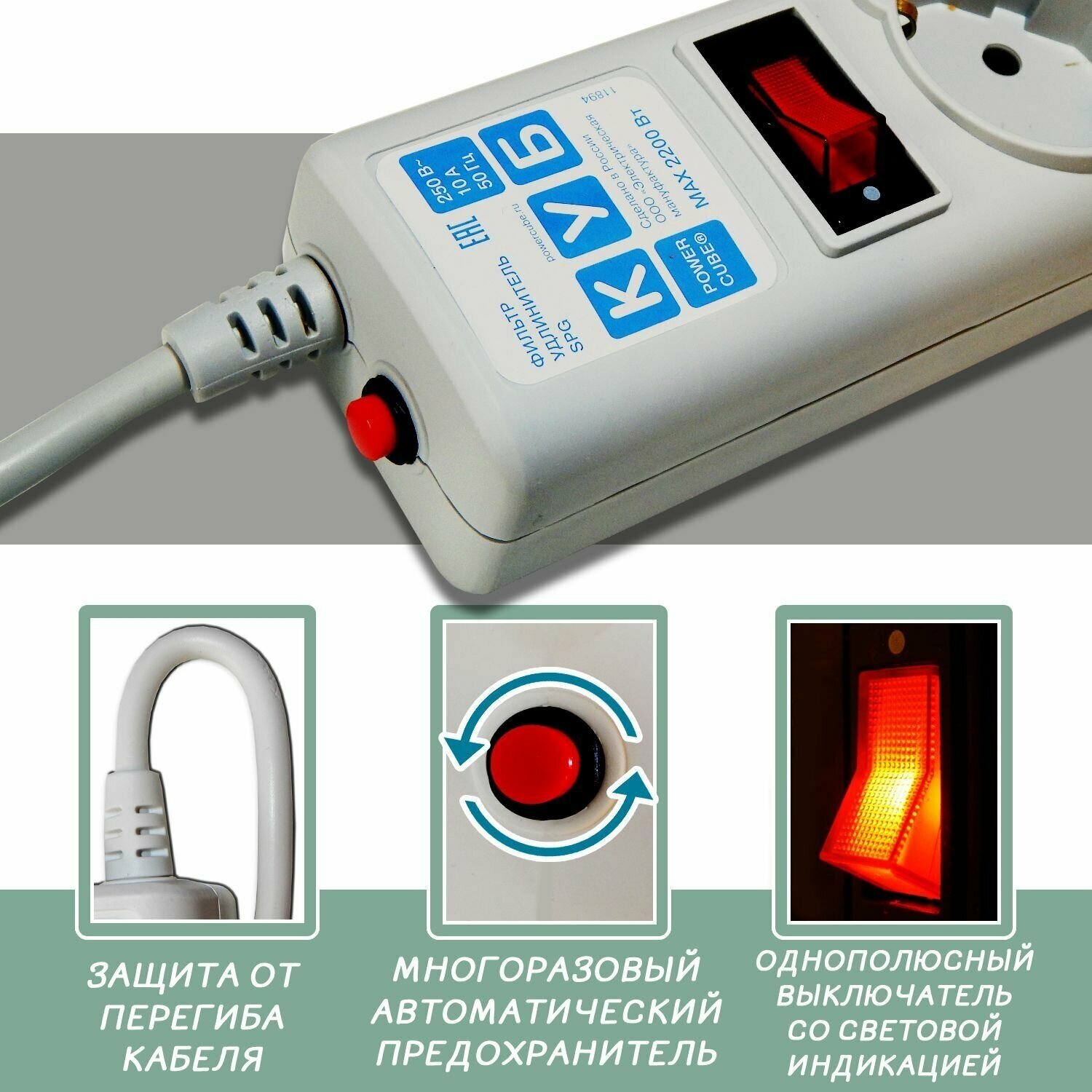 Фильтр-удлинитель 5*5 с з/к москва power cube B/танго 10А