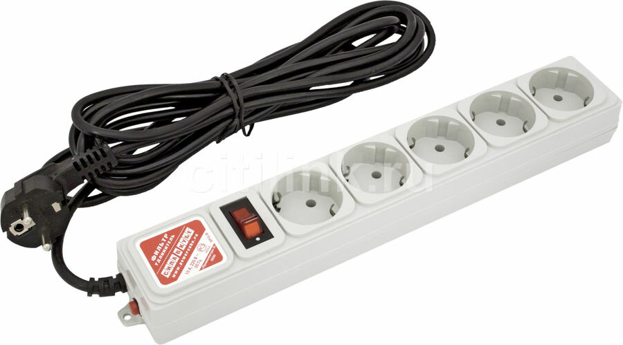 Фильтр сетевой VEKTOR LITE 5 без заземления 5м черный