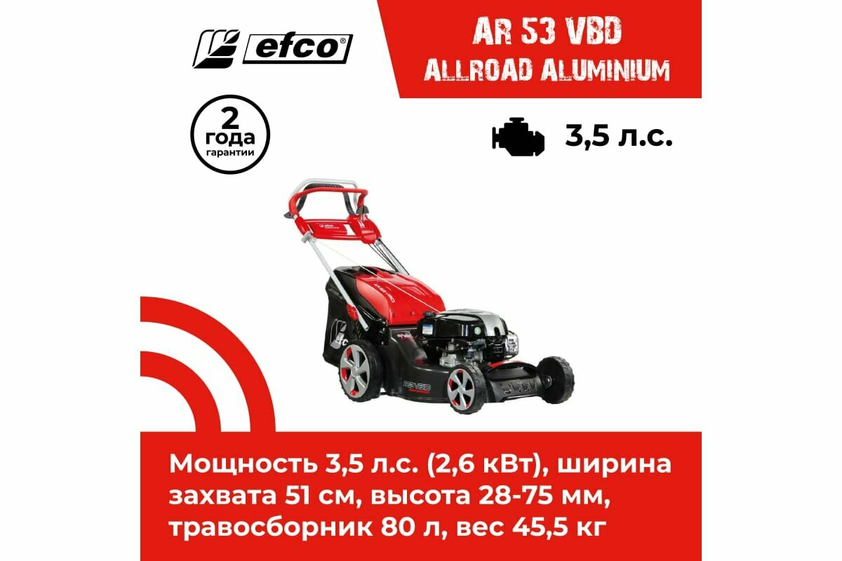 Газонокосилка бензиновая Efco AR 53 VBD AllRoad Aluminium интересное: