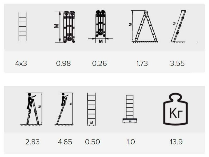 Лестница-трансформер алюмет TW1 433 алюминиевая шарнирная (4*3) интересное: