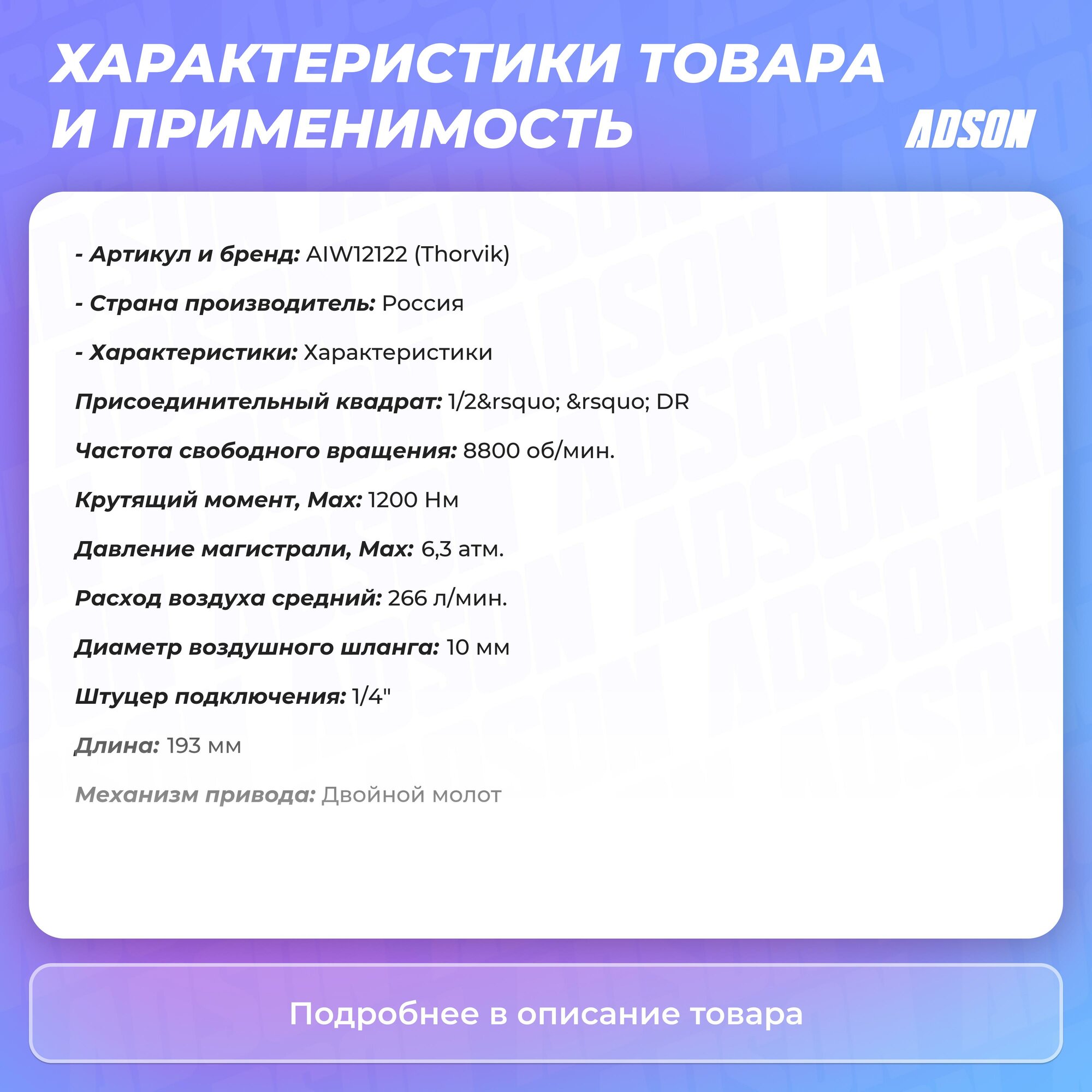 Гайковерт ударный пневматический 1/2"DR 8800 об/мин, 1220 Nm Thorvik интересное: