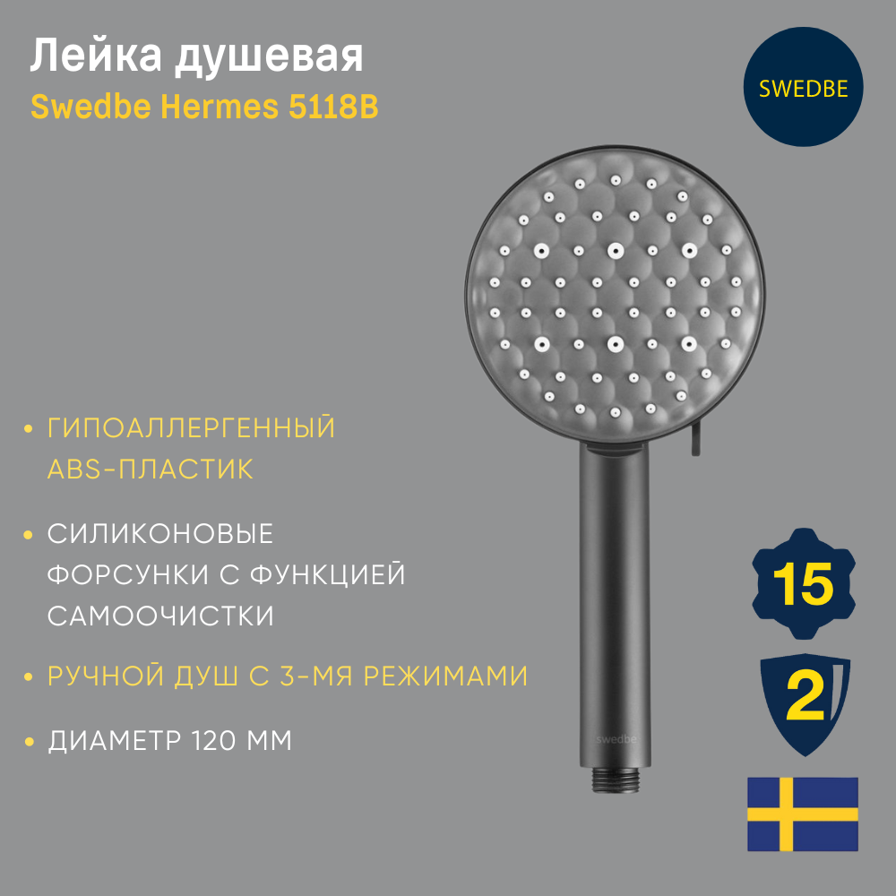 Душ ручной Swedbe Hermes черный 5118B