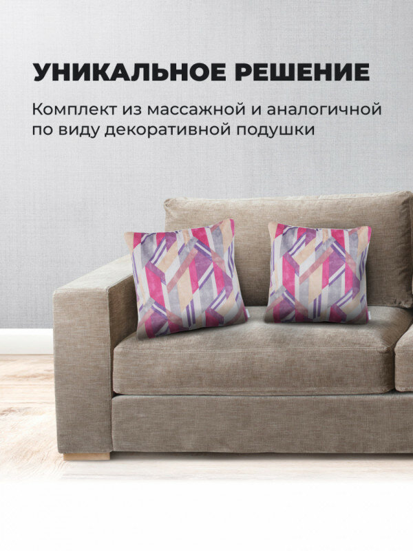 Беспроводная массажная интерьерная подушка GESS Decora (рубиновая) GESS-161 + дополнительная обычная декоративная подушка и 2 наволочки в одном цвете
