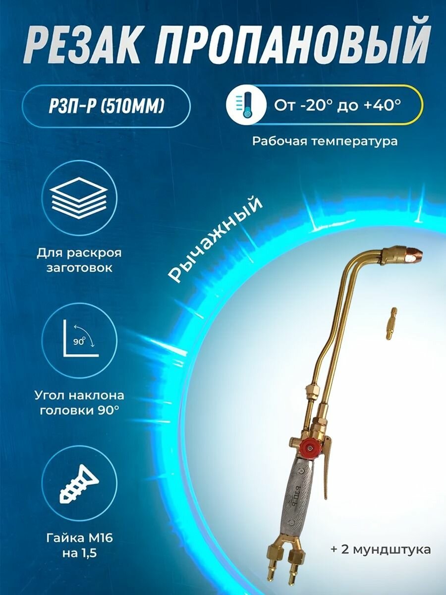 Резак пропановый+2 мундштука в комплекте Р3П-Р(510мм) рычажный(гайка М16*1,5) интересное: