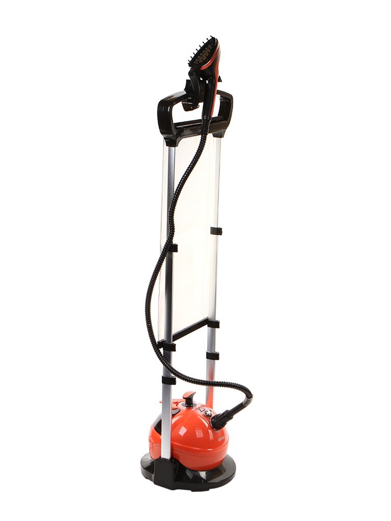 | Плюсы: | К достоинствам данной модели можно отнести компактность, удобную стойку с вешалкой, привлекательный внешний вид – красный цвет смотрится очень стильно, а еще в контейнер удобно наливать воду. Также модель оснащена гладильной доской (сеткой). Процесс отпаривания от прошлой модели (которая в данный момент более дорогая) ничем не отличается, что несомненный плюс. Благодаря съемной щетке очень удобно отпаривать стрелки на брюках. |