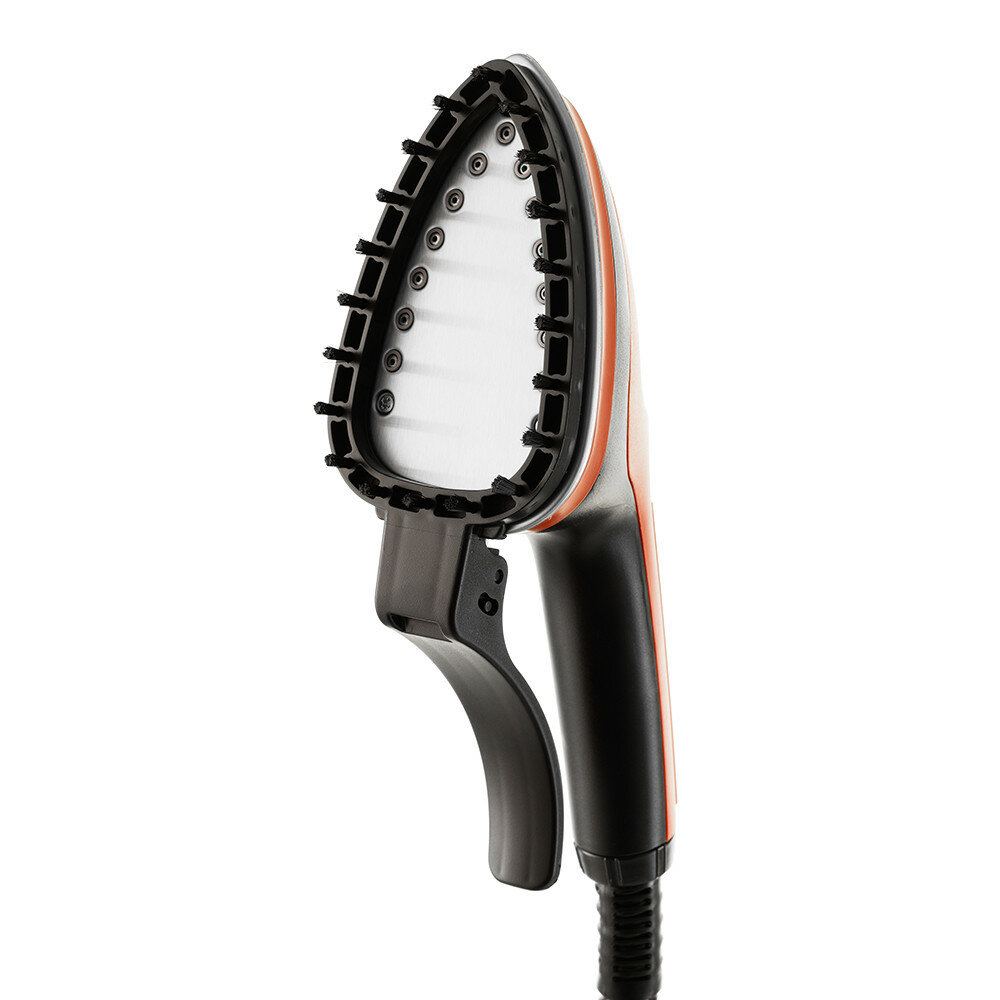 Струя пара в процессе работы постоянная, не брызгается. Очень удобно, что есть утюжок и вертикальная сетка. С изделиями, которые требуют тщательной отпарки, без них было бы сложно справиться. Есть плечики и есть крючок для вешалки. В комплекте идёт щётка и перчатка. |