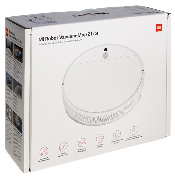 Пылесос Xiaomi Mi Robot Vacuum-Mop 2 Lite RU BHR5959RU сухая/влажная уборка, пылесборник 0.45л, бак для воды 0.27л, белый