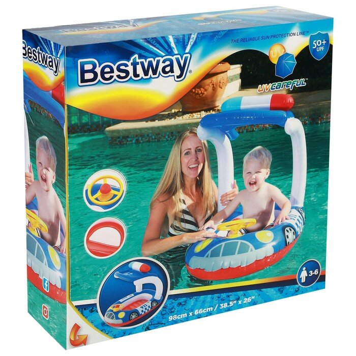 Купить Bestway Лодочка для плавания "Машинка" с тентом, 98 х 66 см, от 3-6 лет, от 3-6 лет, цвета микс, 34103 Bestway