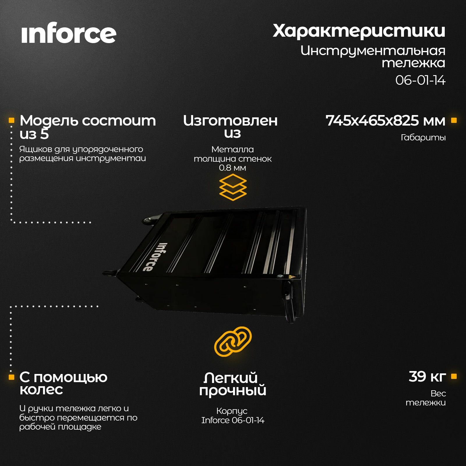 Ниже Вы можете прочитать отзывы на Inforce Тележка инструментальная 5 ящиков 745х465х825 06-01-14, ознакомится с подробными характеристиками, посмотреть интересные обзоры и фотографии на Inforce Тележка инструментальная 5 ящиков 745х465х825 06-01-14.