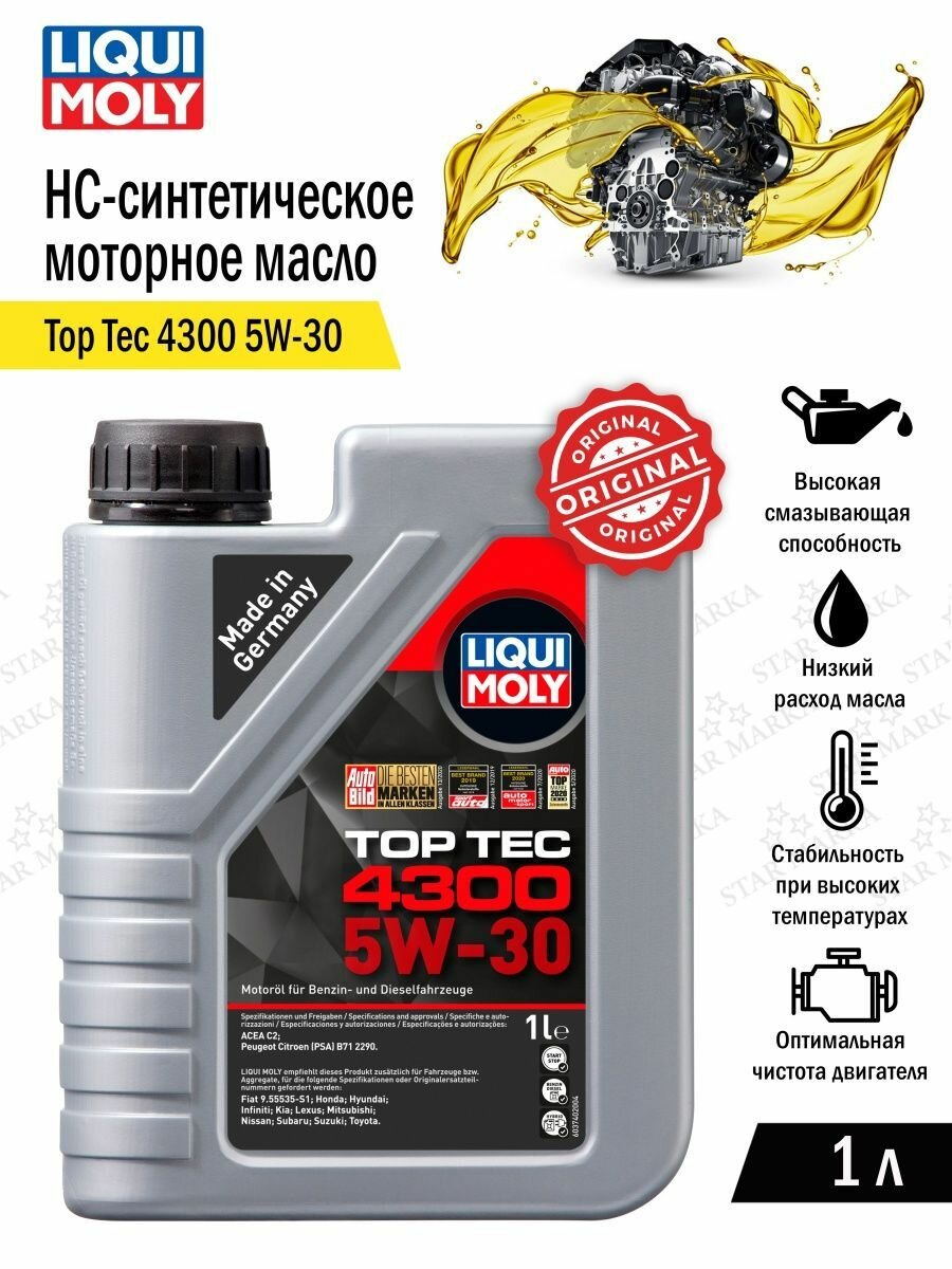 Масло моторное Liqui Moly Top Tec 4300 5w30 для Pca, Honda, Toyota, Fiat (1л) Синтетика .
