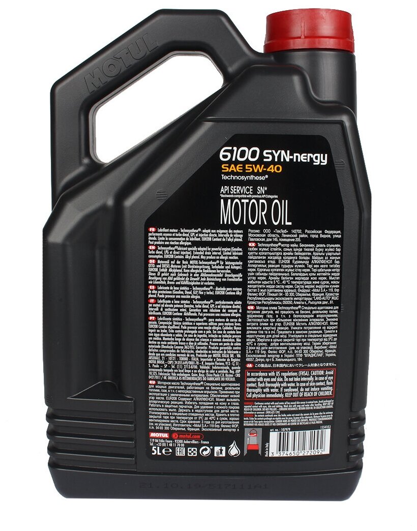 MOTUL 111690 Масло моторное Motul 6100 Syn-Nergy 5W-40 синтетическое 5 л 111690