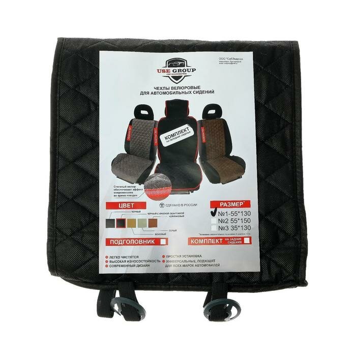 Купить Накидка на переднее сиденье, велюр, размер 55 х 130 см, коричневый, широкое сиденье