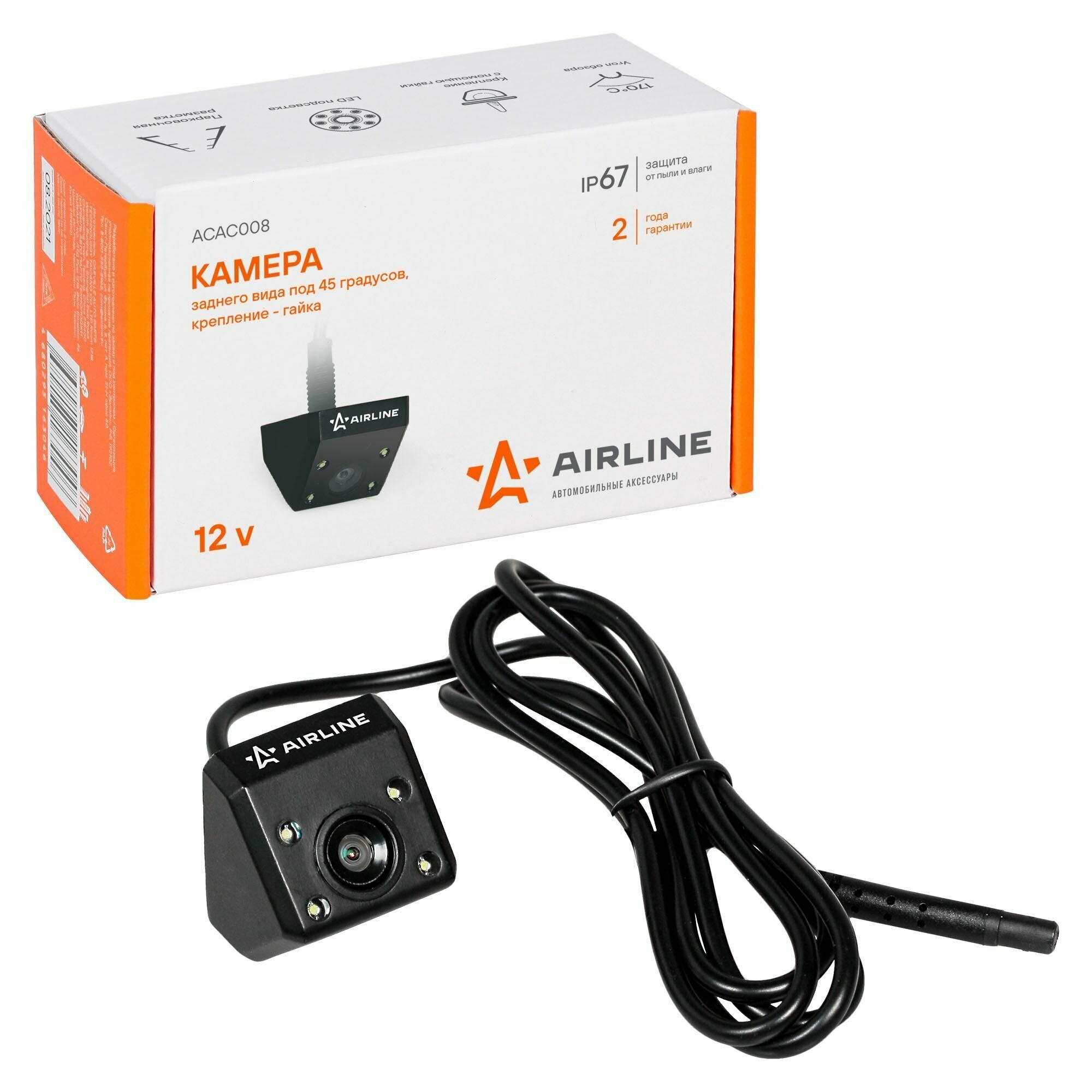 AIRLINE ACAC008 Камера заднего вида под 45 градусов крепление - гайка (ACAC008) 1шт