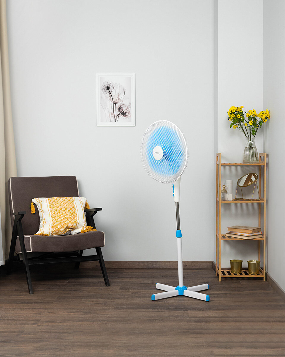 | Отзыв: | Дизайн современный и приятный. Основание крестообразное, позволяет стоять конструкции устойчиво и не вибрировать в рабочем состоянии. Стойка легко регулируется по высоте. Направленность обдува также можно изменить. Лопасти вращаются в трех скоростных режимах. Они помещены в защитную сетку отличного качества. Дует хорошо, управляется с помощью кнопок на стойке. |