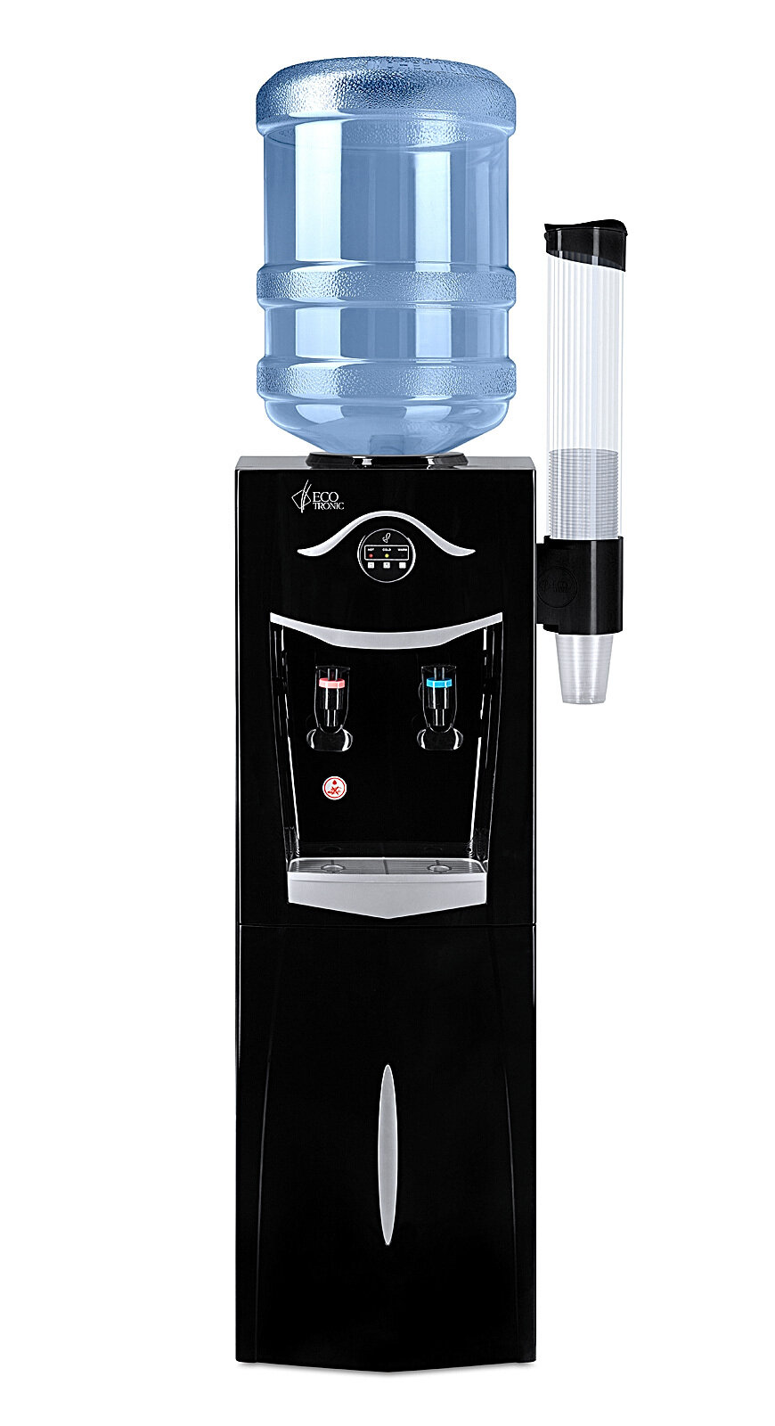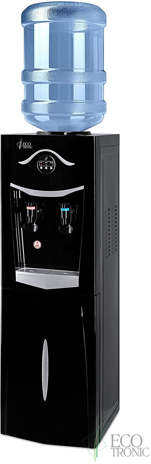 Кулер для воды Ecotronic K21-LCE / Бело-черный / Напольный / Нагрев / Электронное охл / Нажатием кружкой / Шкафчик