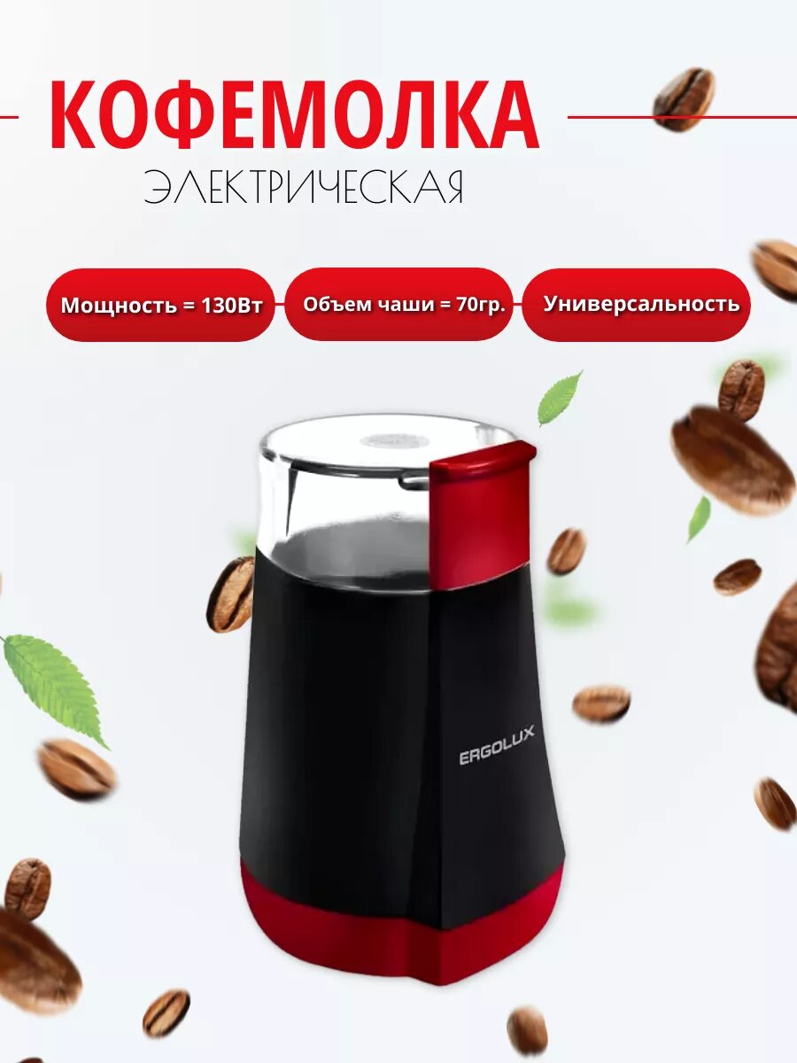 ELX-CG02-С43 черно-красная (электрическая кофемолка130 Вт, 220-240 В, объем 70 гр), ERGOLUX ELX-CG02-C43 (1 шт.)