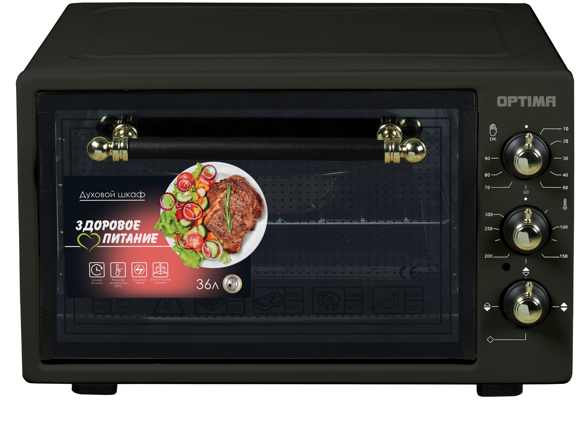 Духовка электрическая OPTIMA OF-36BR (36л, таймер, лампа, противень 2шт., решетка, бежевый, 1300Вт)