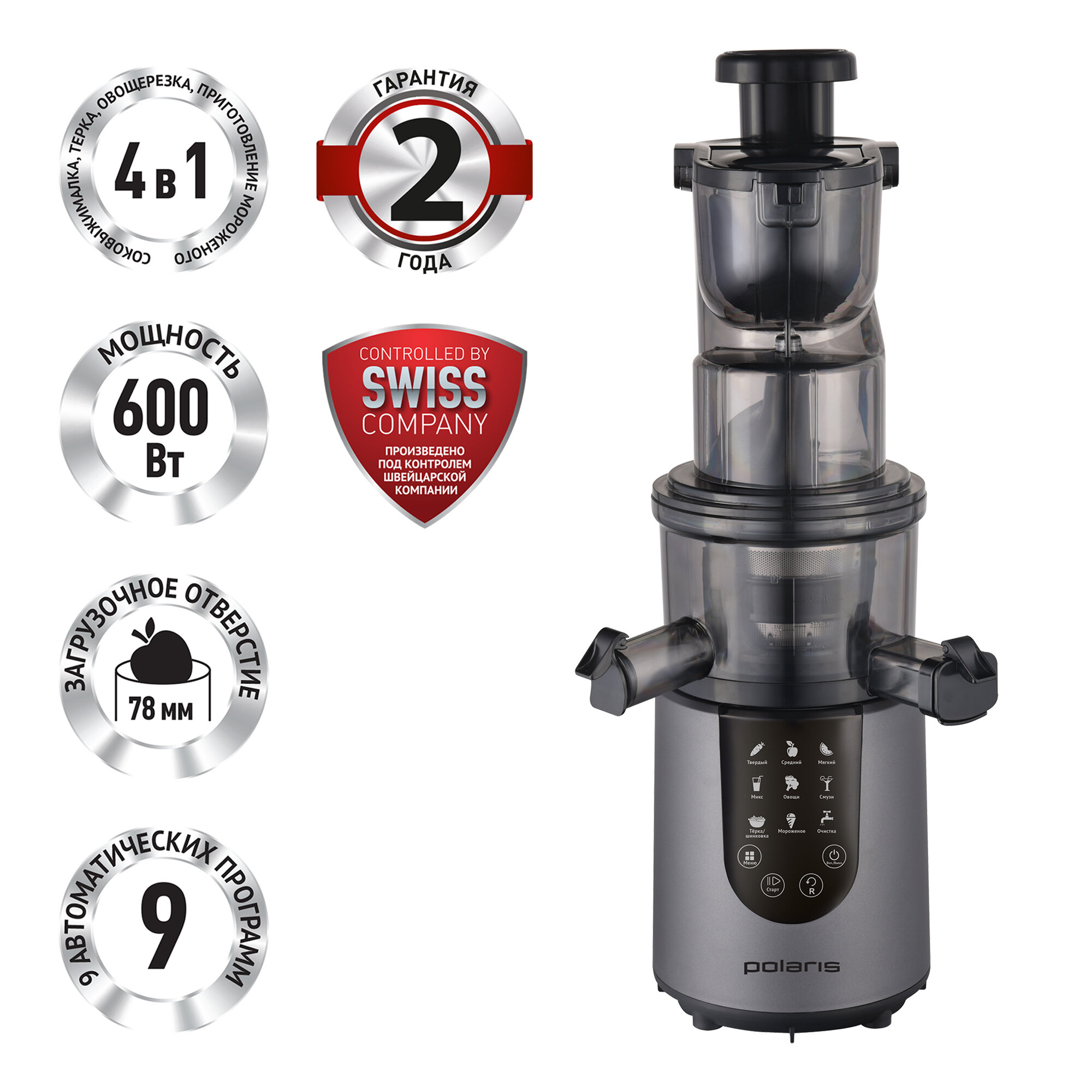 Шнековая соковыжималка Polaris PSJ 0602, графит
