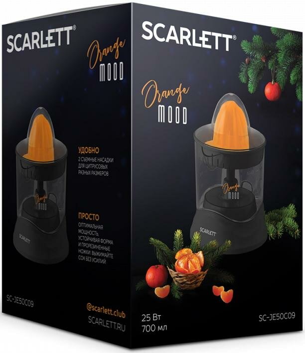 Соковыжималка цитрусовая SCARLETT SC-JE50C09, черный/оранжевый