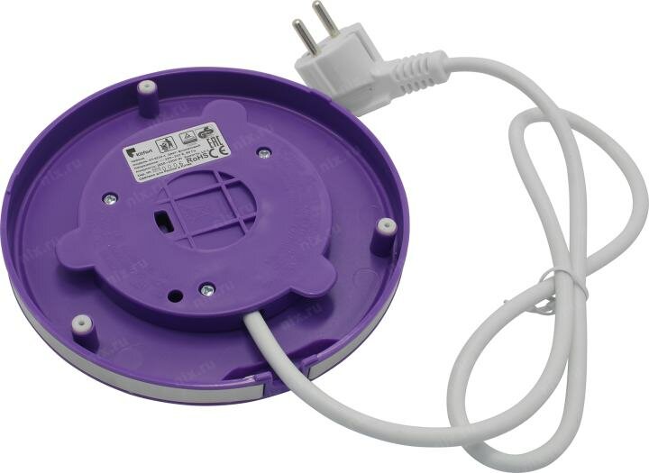 Он прекрасен. Мне как любителю фиолетового очень понравилось. Да и учитывая какой богатый спектр цветов у данной модели, многие найдут себе по душе. Приятна его форма и материл - он матовый, отпечатков не оставит. Колба выполнена из стекла, однако она заключена в пластмассу. Что на мой взгляд очень удобно. Так как не видно будет налёта. В то время как на моём старом чисто стеклянном чайнике он частенько досаждал. Ведь появляется буквально после трёх использований. - Конструкция индикатора уровня воды Тоже на мой взгляд очень удачное решение. Т.к. разметка нанесена на саму колбу. Поверх которой уже идёт пластмассовый корпус. Обычно проблема таких индикаторов в том, что их различными способаак бы "вшивают", тем самым создают уязвимость - возникновение протечки. - Широкая ручка Ну тут всё понятно. Даже большой ладонью можно плотно и хорошо схватить. - Поддон, площадка куда ставится чайник Можно ставить как угодно на все 360 градусов. |