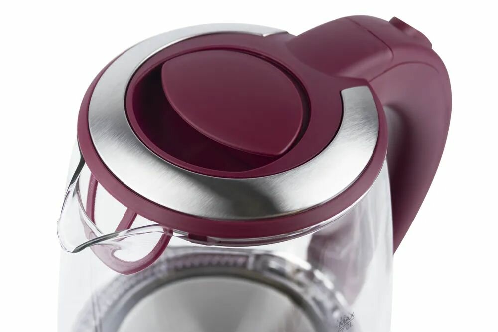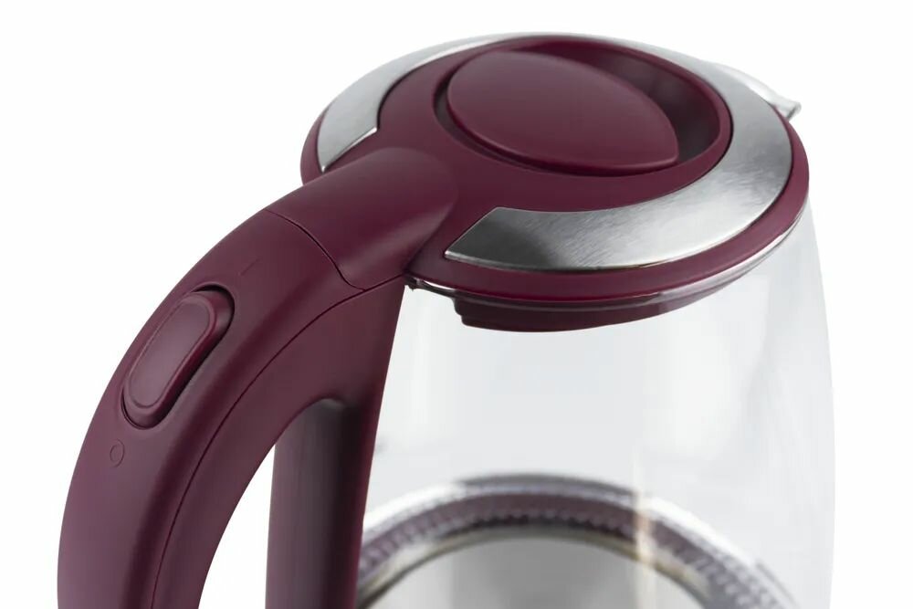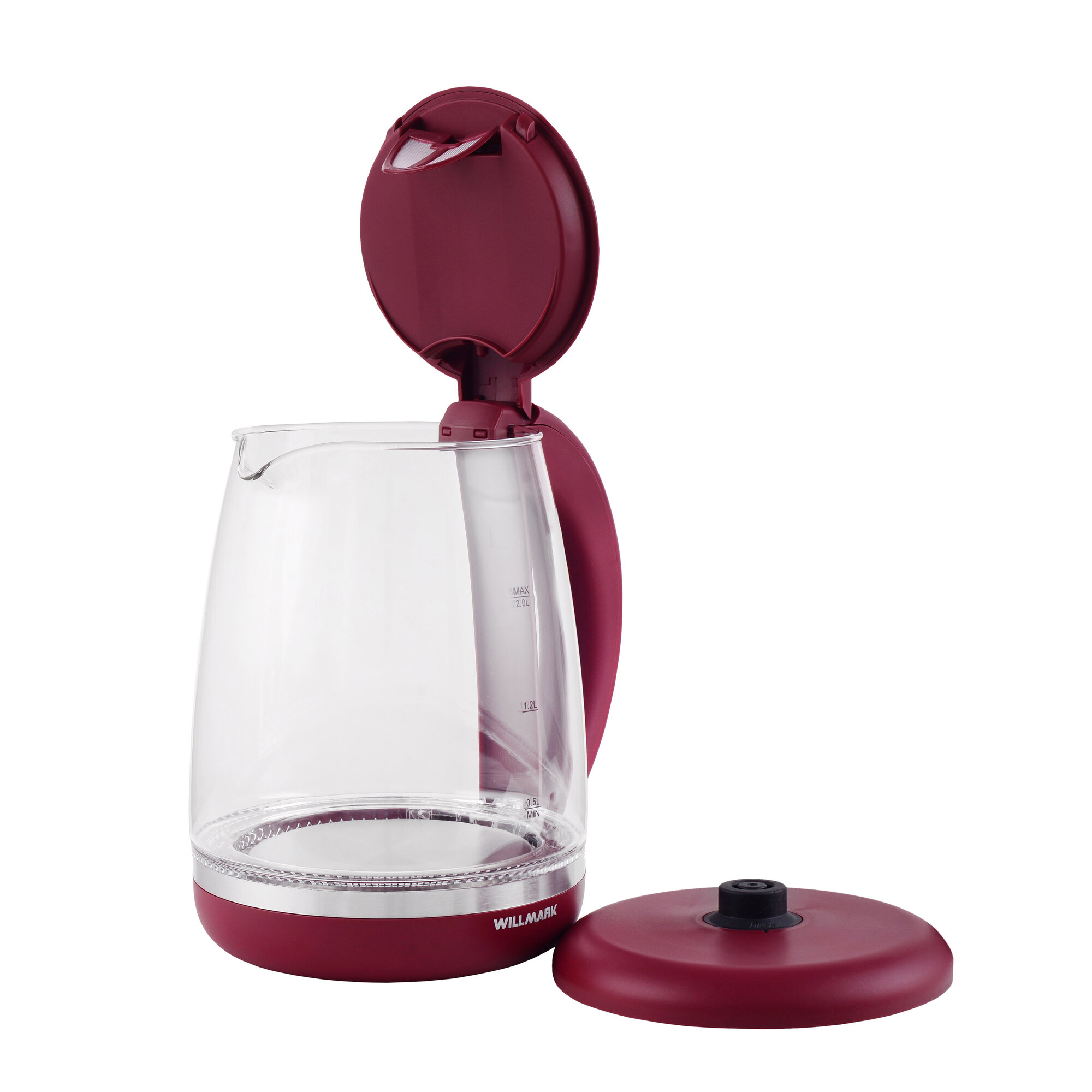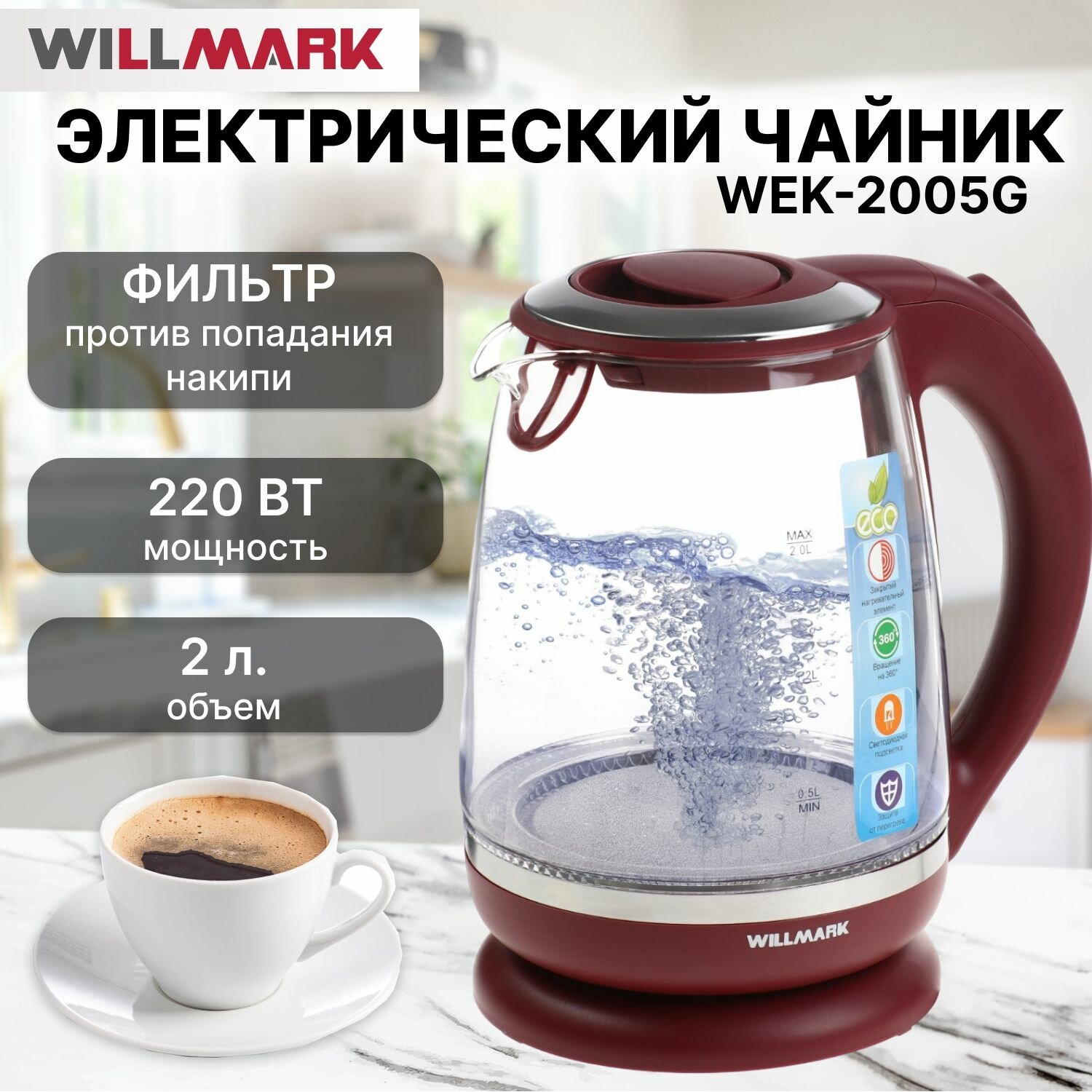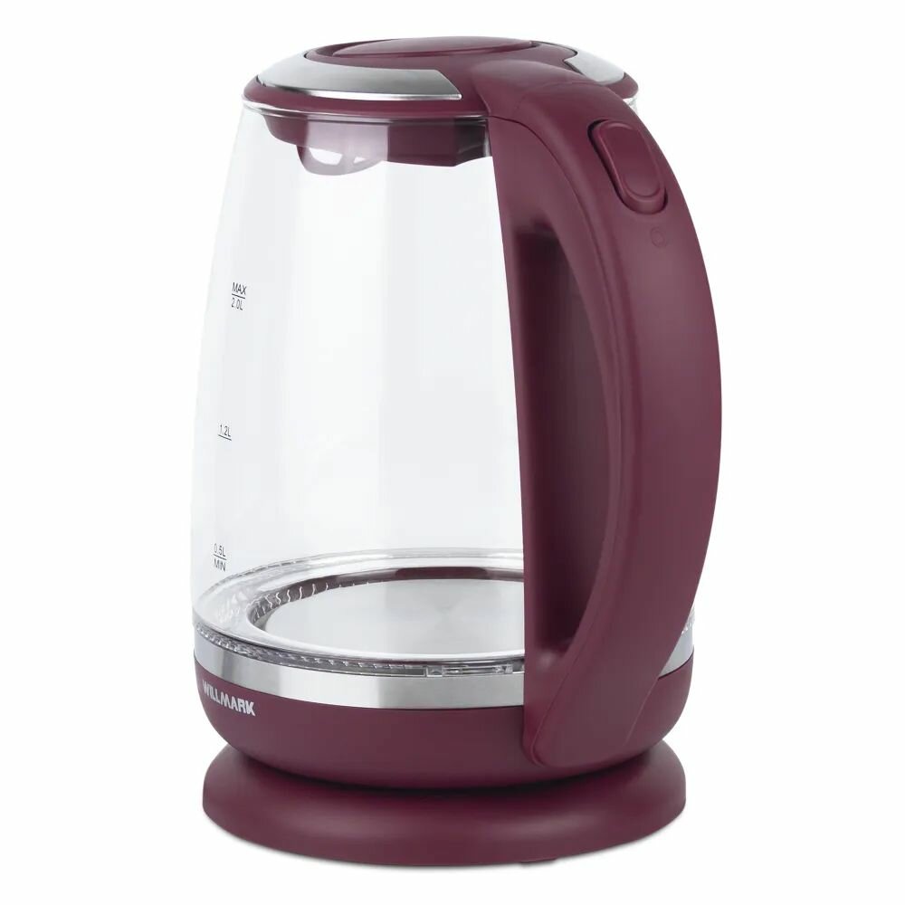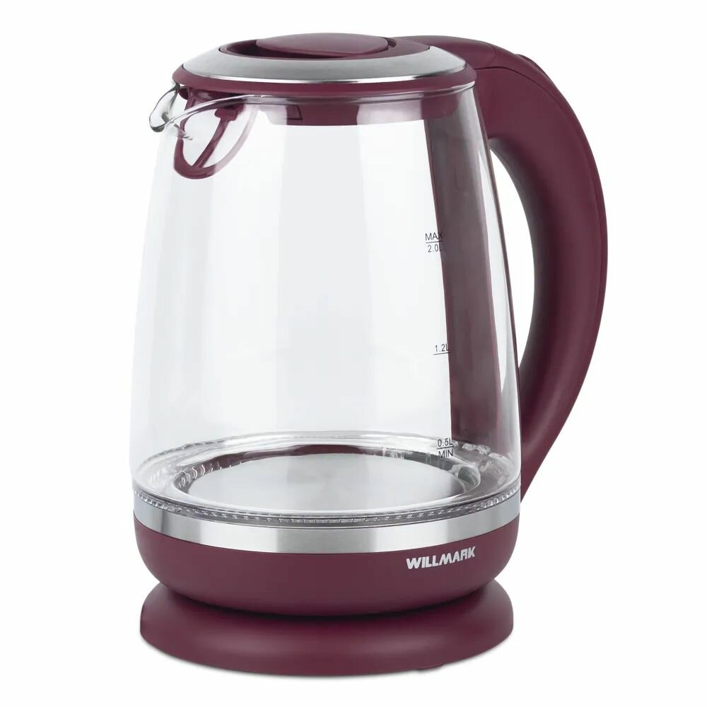 Чайник электрический Willmark Wek-2005g, стекло, 2 л, 2200 Вт, LED-подсветка, бордовый Willmark 7782 .