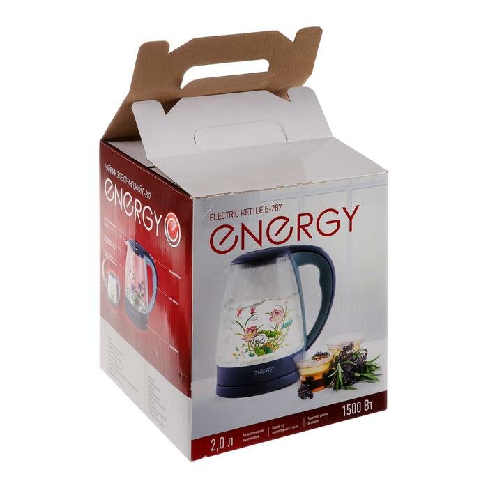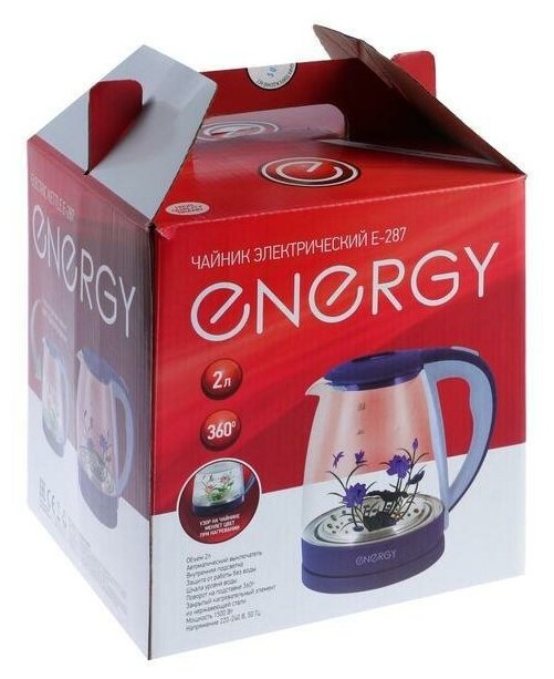 Чайник электрический E-287, стекло, 2 л, 1500 Вт, подсветка, синий интересное:
