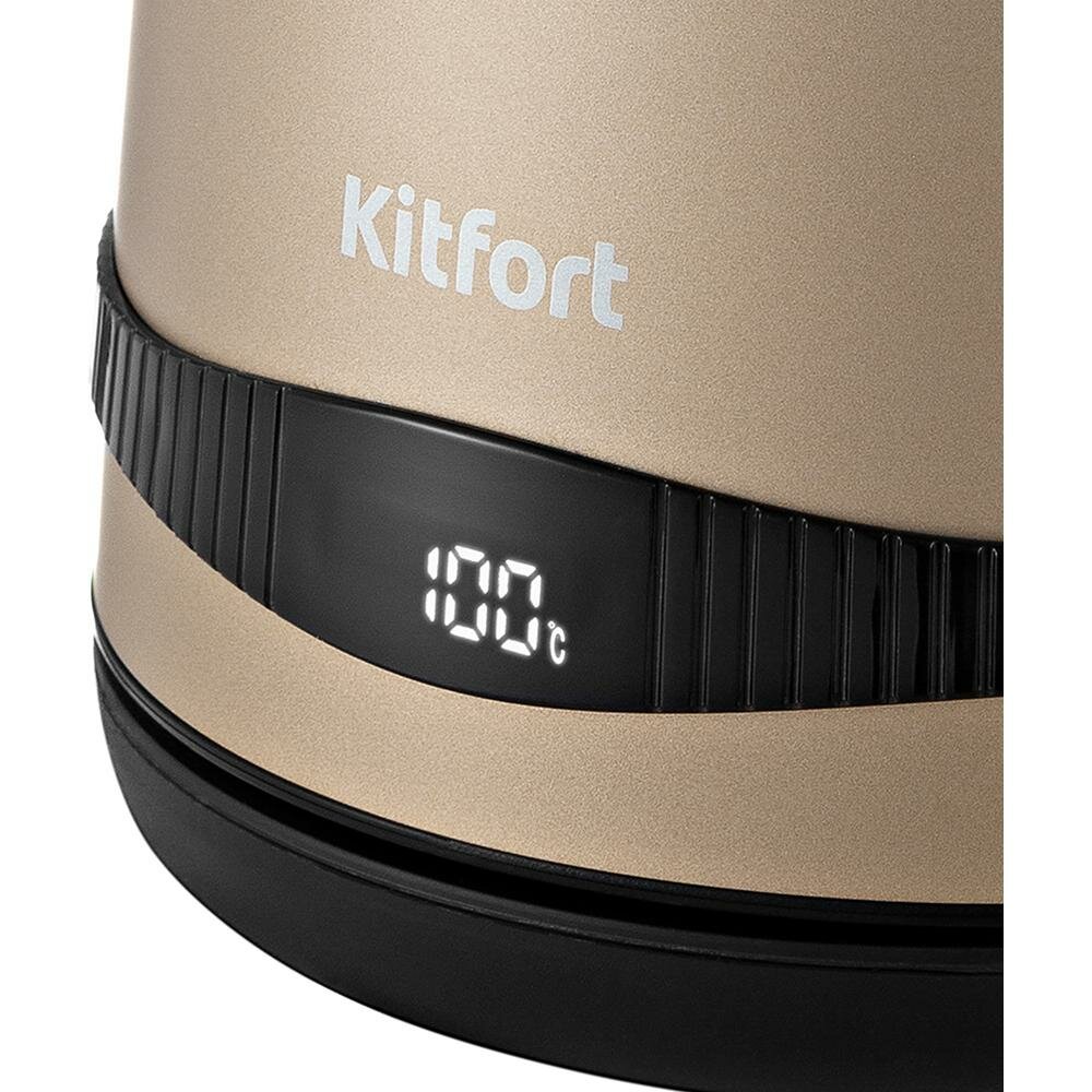 Чайник KITFORT КТ-6121-4, 1,7 л, 2200 Вт, закрытый нагревательный элемент, LED-дисплей, терморегулятор, сталь, бежевый