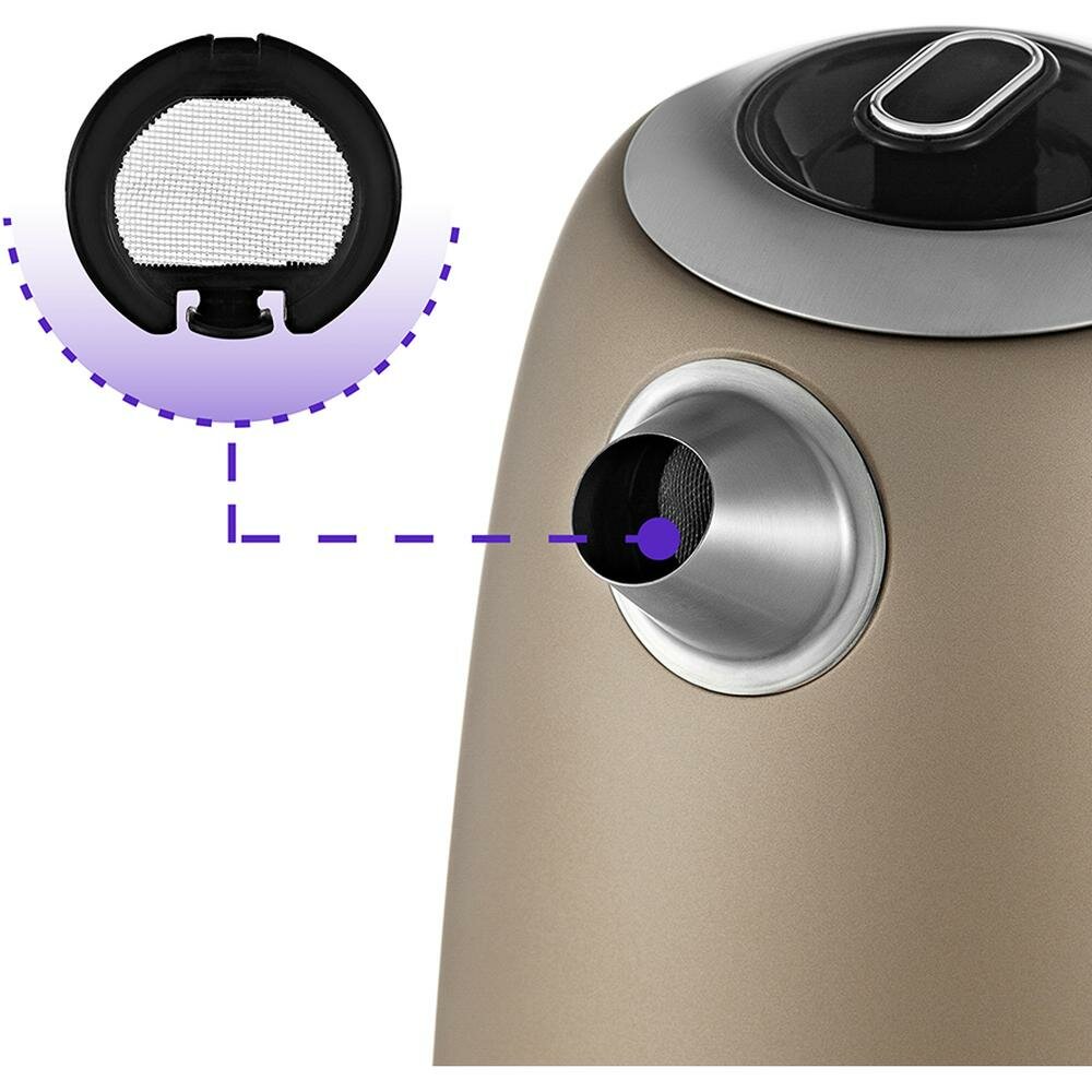 Чайник KITFORT КТ-6121-4, 1,7 л, 2200 Вт, закрытый нагревательный элемент, LED-дисплей, терморегулятор, сталь, бежевый, 456004