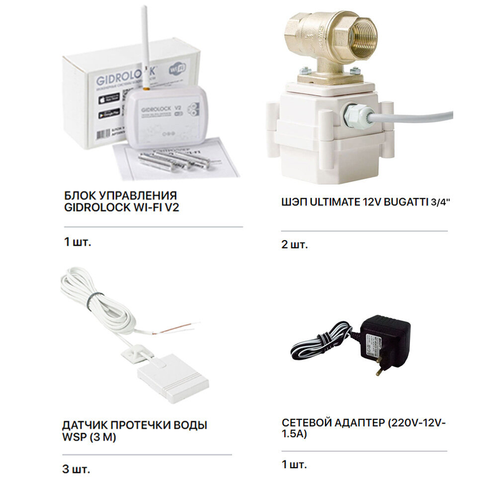 Купить Комплект Gidrolock Wi-Fi Bugatti 3/4