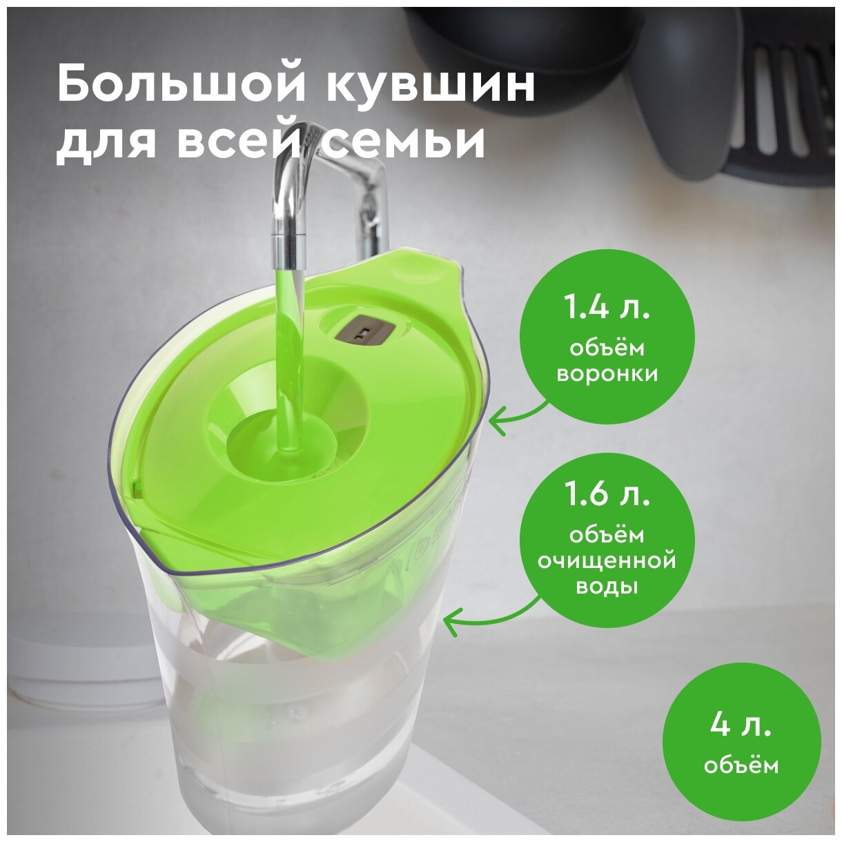 Фильтр-кувшин для очистки воды БАРЬЕР Чемпион 4 л, цвет зеленое яблоко интересное: