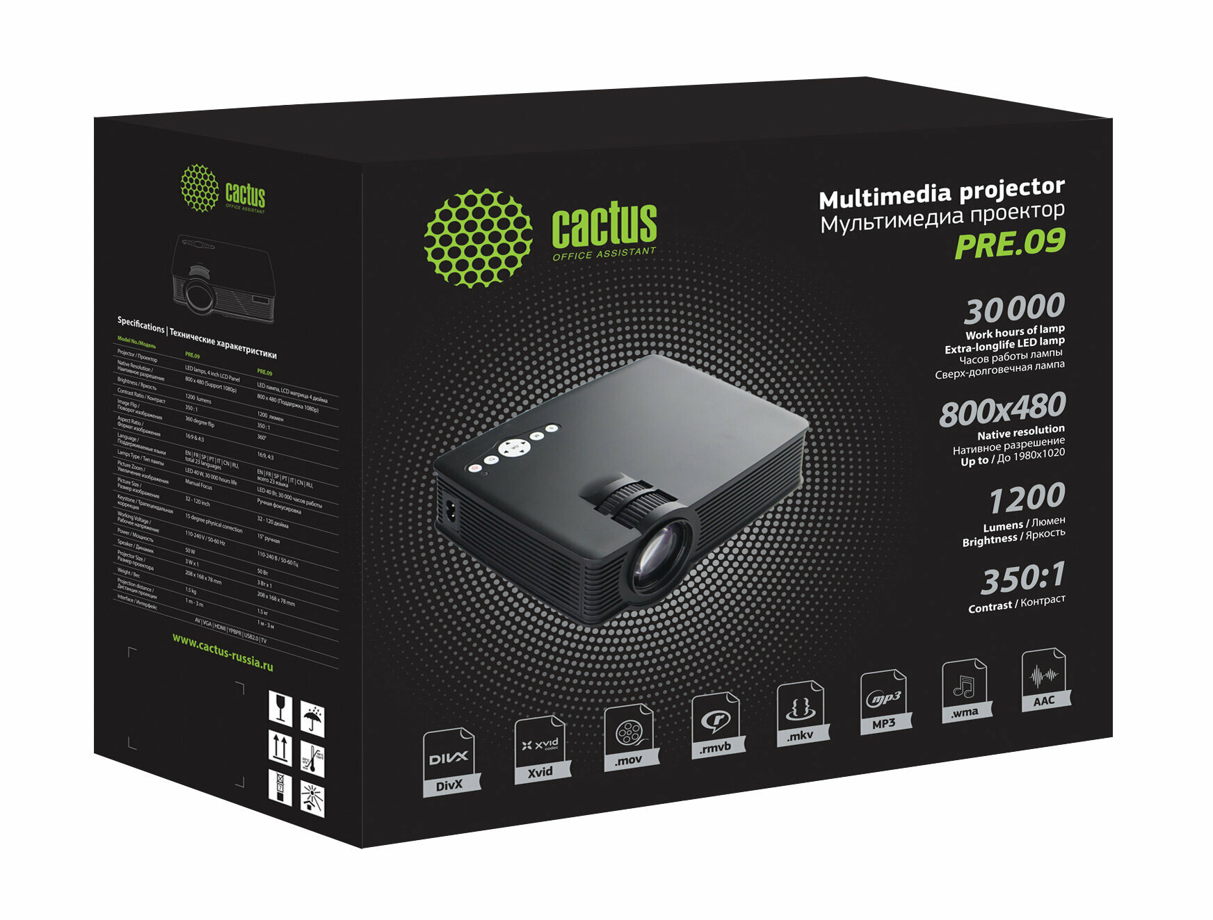 Проектор Cactus CS-PRE.09B.WVGA/LCD 1024x600 350:1 1200lm интересное: