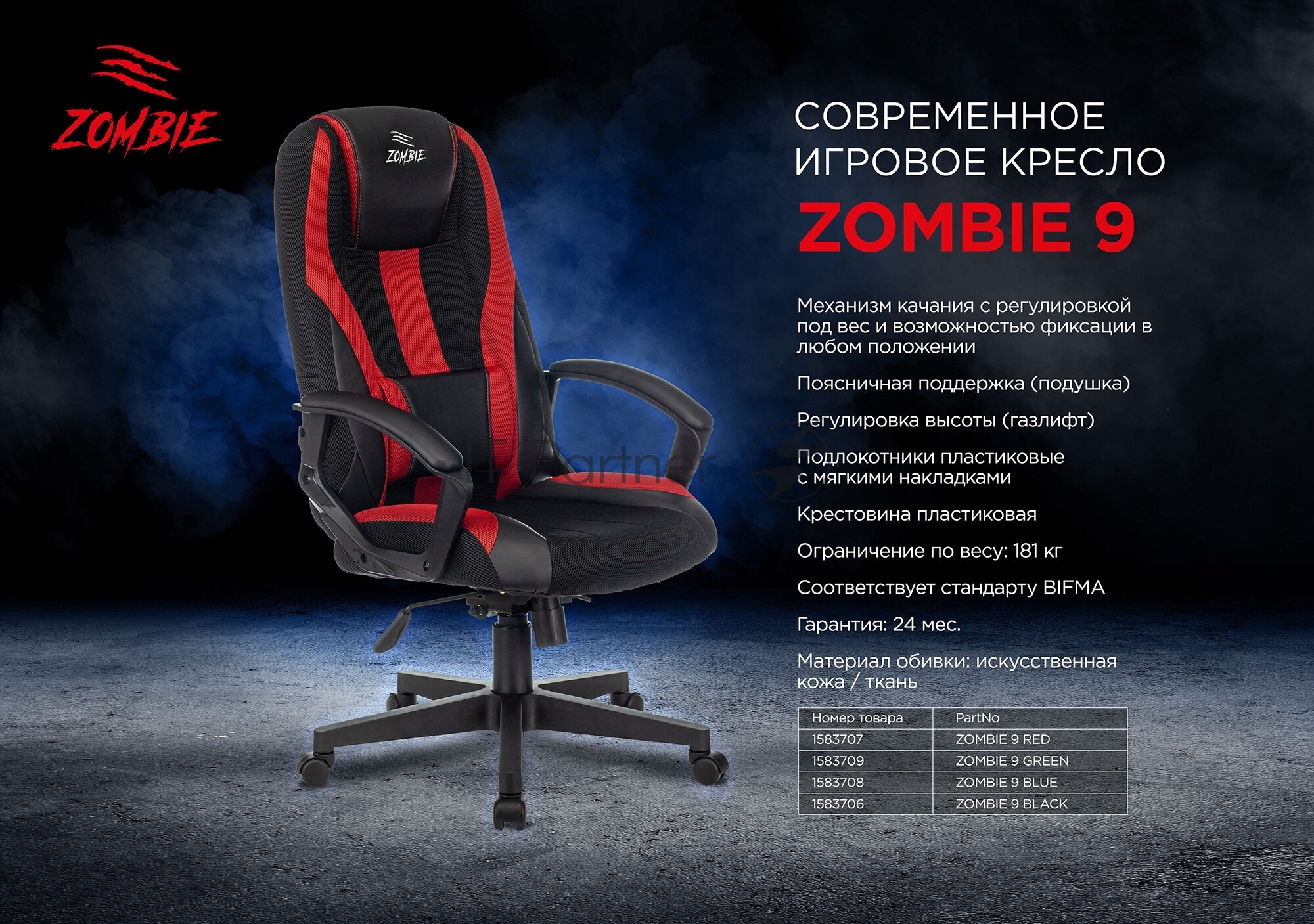 Игровое кресло Бюрократ Zombie 9 (Black/Red)