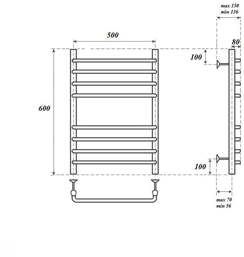 Водяной полотенцесушитель Aquanet Mauro(г2) 800x500
