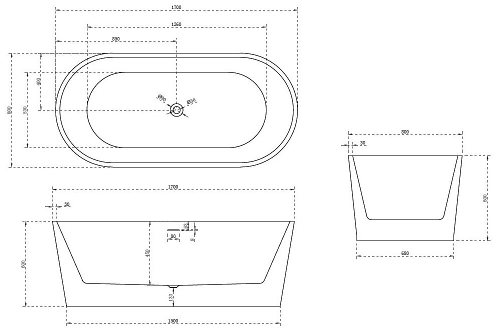 Ванна отдельностоящая ABBER AB9209 170х80 акрил левосторонняя/правосторонняя