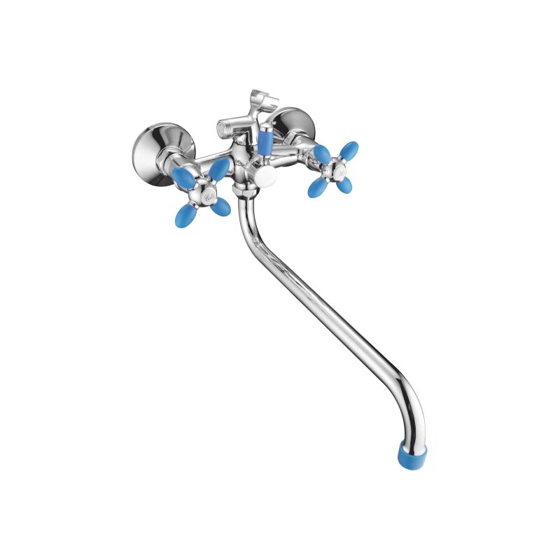 Смеситель ванна 30 см крест Силумин Синий+Хром Accoona A7182M