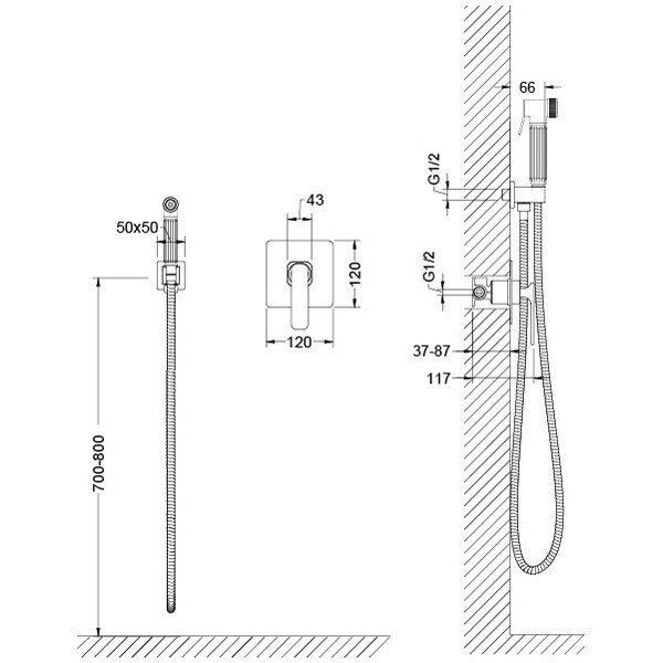 Встраиваемый смеситель для биде Timo Torne (4389/03SM) с гигиеническим душем, черный