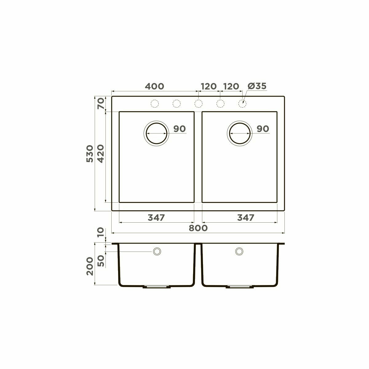 Кухонная мойка двухчашевая OMOIKIRI Bosen 80-2-BL, искусственный гранит/две большие чаши/черный