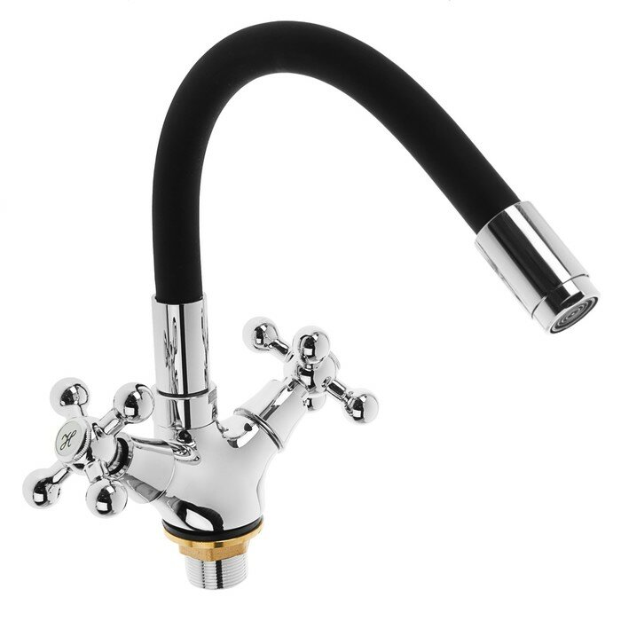 Смеситель для кухни с гибким изливом Accoona A9871G, двухвентильный, силиконовый излив, силумин