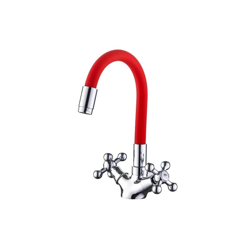 Cмеситель для кухни A9871N, двухвентильный, силиконовый излив, силумин, красный/хром
