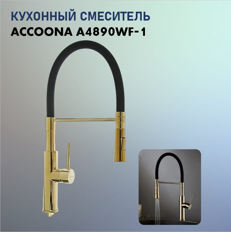 СохранитьСмеситель для кухни Accoona A4890WF-1, однорычажный, латунь, черный/золото интересное: