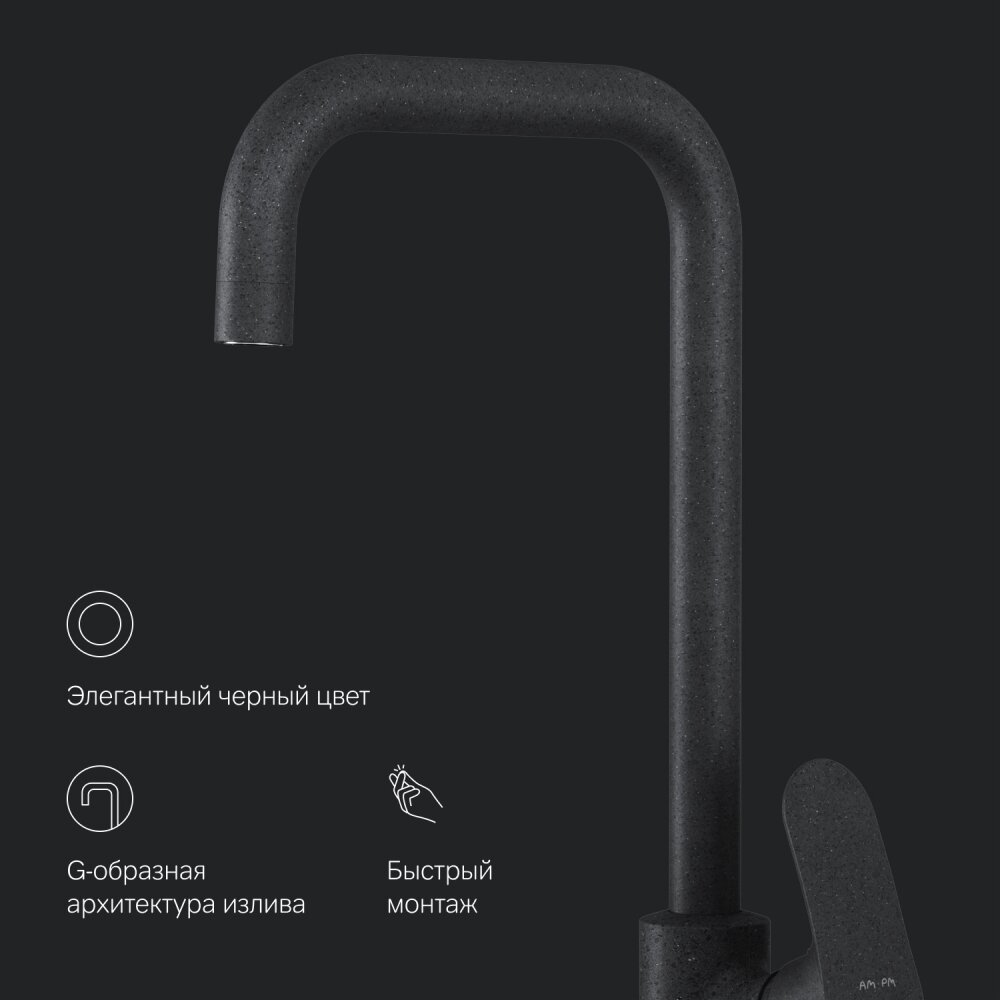 Смеситель для кухни черный AM.PM Like, G-образный излив,высококачественная латунь,
